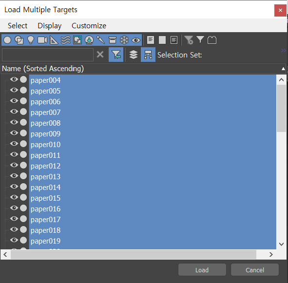 그 후, Load Multiple Targets를 눌러서 불러올 친구들을 선택합니다. 004~052까지 전부 불러오면 되겠죠?
