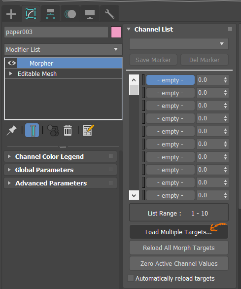불러오면 Morpher 창에 하나씩 들어가 있는걸 확인할 수 있습니다.